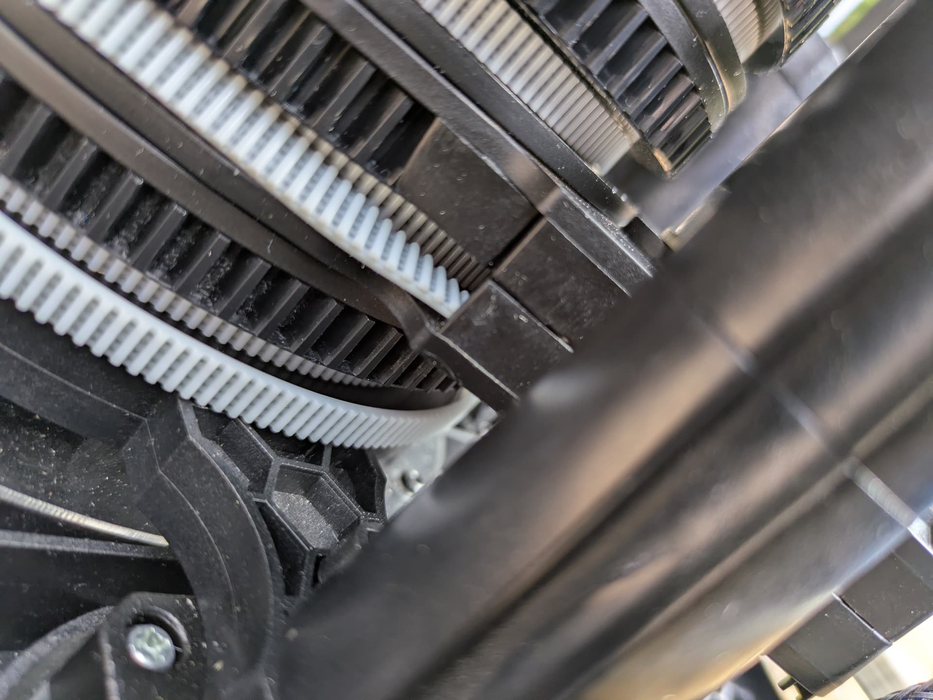 as a result, it was trying to pull the belts, thinking that it needed to pull them in more than it really did. And the torque of the motor was enough to snap the belts.